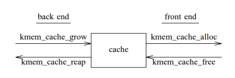 前端 是分配器的公共接口. 它负责在缓存中移动对象, 并在需要更多对象时调用后端.